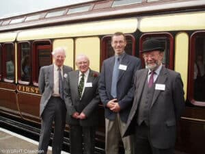The coach was officially returned to traffic by Lady Acland-Hood-Gass, President of the Trust and Lord-Lieutenant of Somerset, who cut the ceremonial ribbon at Bishops Lydeard station before the coach left for Minehead behind WSR 2-6-0 no 9351 on the 10.25am train. Lady Gass’s great-grandfather, Sir Peregrine Acland-Hood was the main backer of the West Somerset Railway when it was built in 1862.